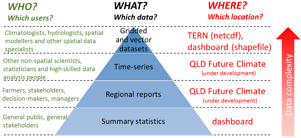 The output of Queensland’s climate modelling simulations is available in a range of formats to suit different end-users (see figure below).